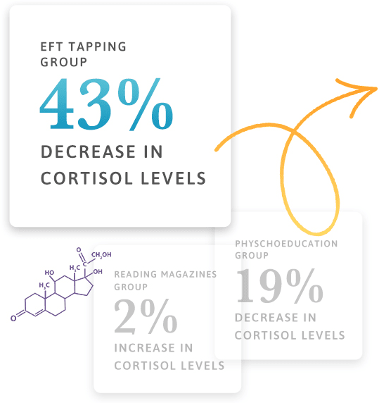 A landmark study published in 2012 in the prestigious Journal of Nervous and Mental Disease, found that EFT Tapping lowered cortisol significantly more than traditional talk therapy or resting.